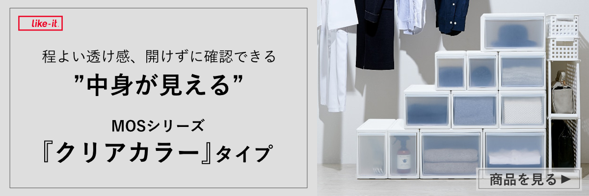 3種類の幅の異なる収納ケースでも積み重ねができるスタッキング構造で、自由にカスタマイズができます。無駄な空間を作らないブロック式構造なので、スッキリとした見た目です。MOSの収納ケースなら、スペースを有効活用したあなただけの「理想の収納」が作れます。
