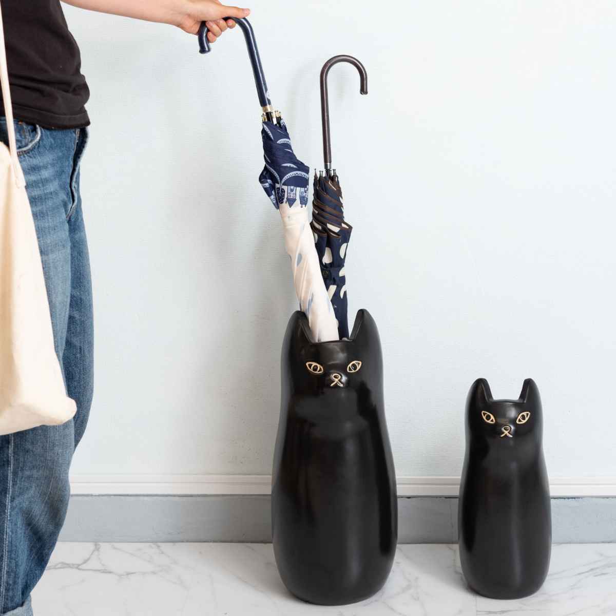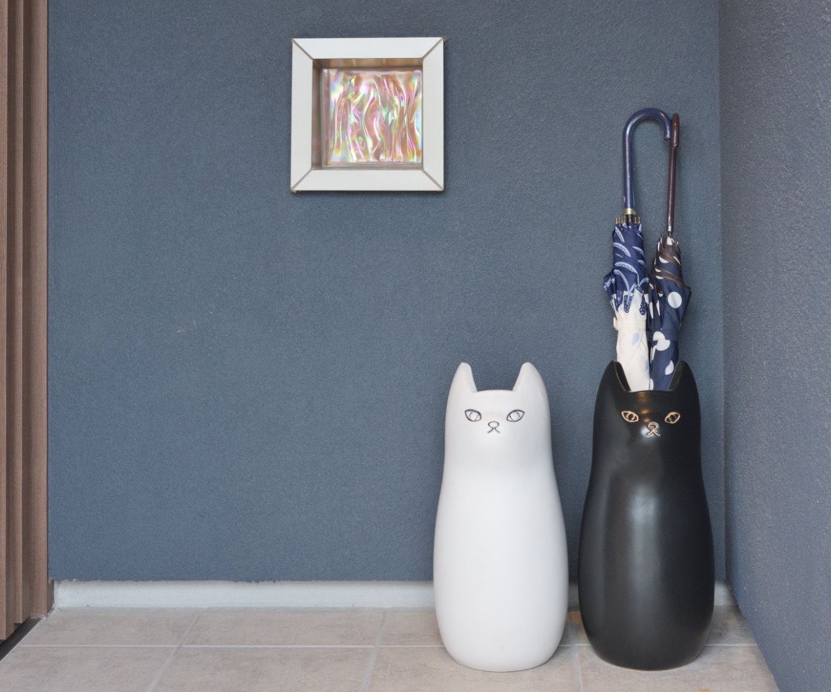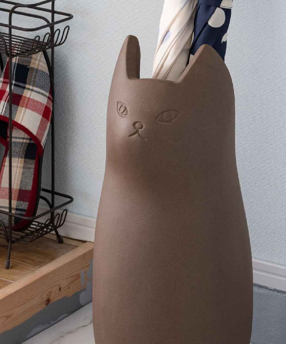 コロンと丸いシルエットが可愛い猫の傘立て(ロングタイプ)です。少し冷たい表情にも愛着が湧きます。玄関周りの程よいアクセントになります。