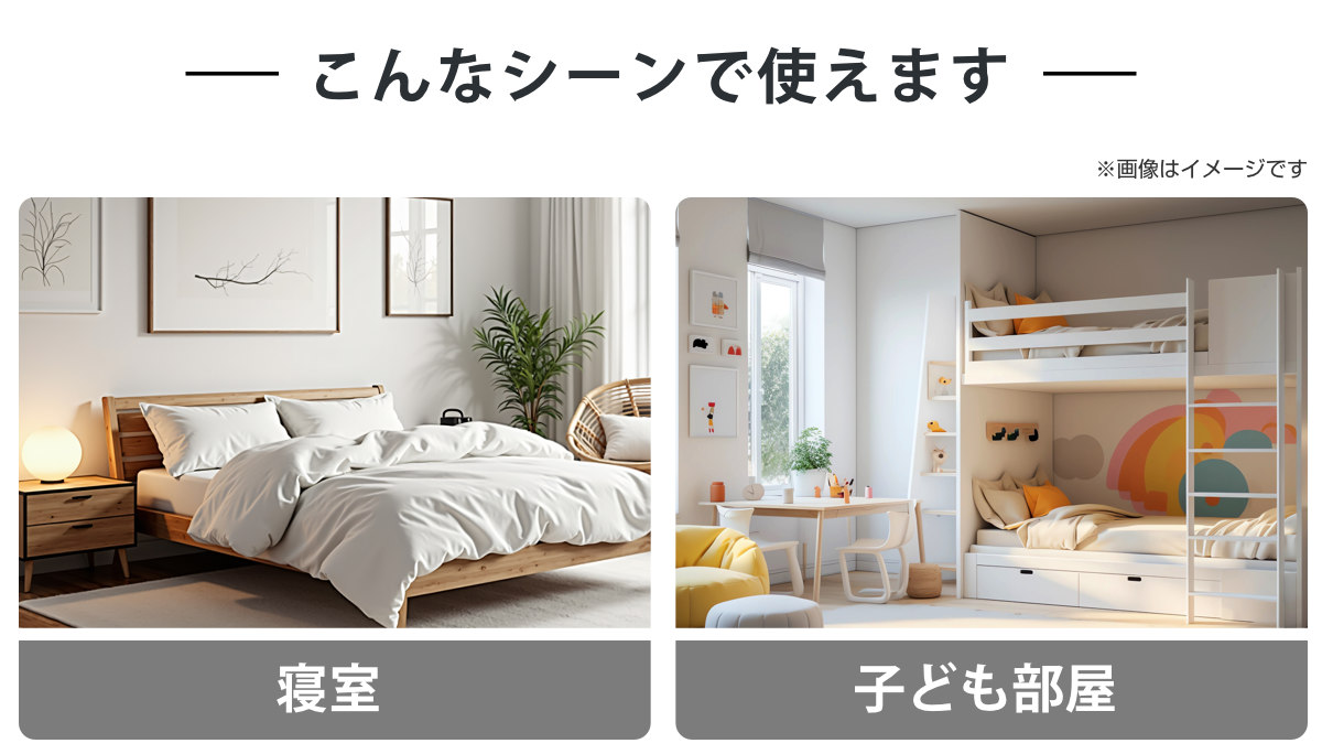 寝室では、枕元に時計やメガネを置くサイドテーブルとして。お子さまの目線にちょうど良い高さなので、子ども部屋では絵本ラックとしても◎