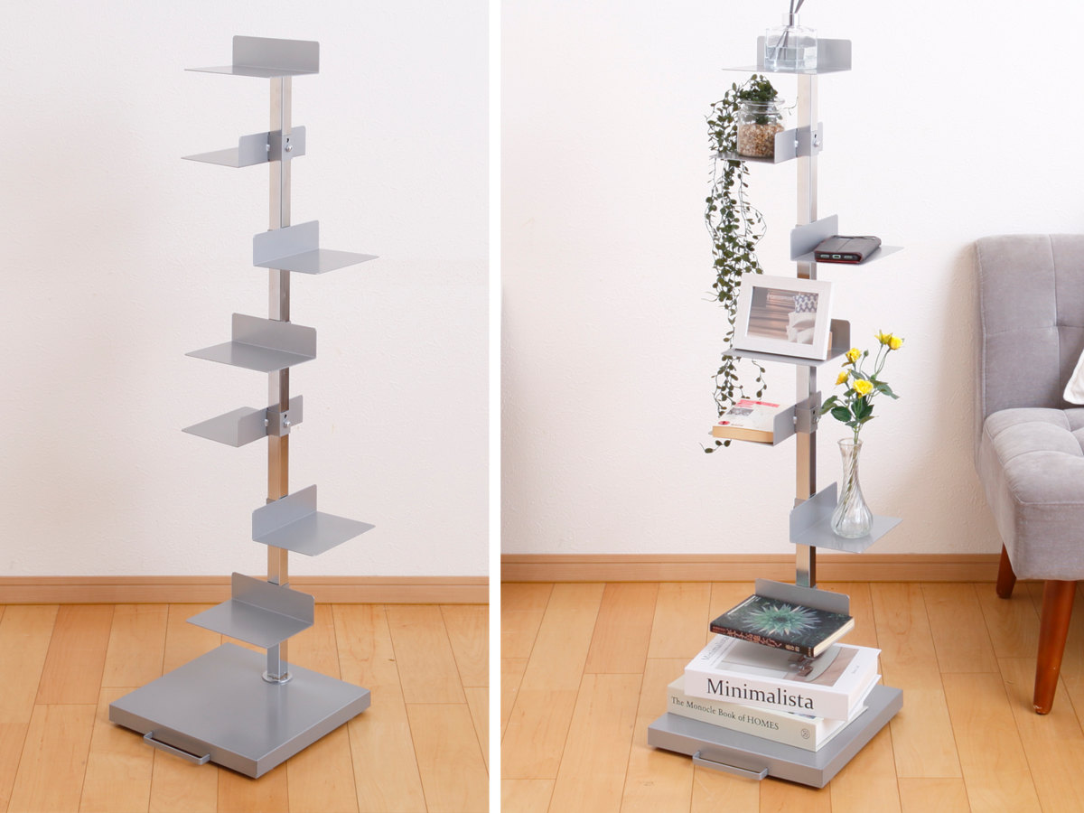 読みかけの本や、すぐに手に取りたい小物を置いておけるブックタワーです。縦の空間を有効利用できるので、リビングやベッドサイドなどでお使いいただけて省スペースです。様々なテイストのお部屋に馴染みやすい、圧迫感のないスッキリとしたデザインです。