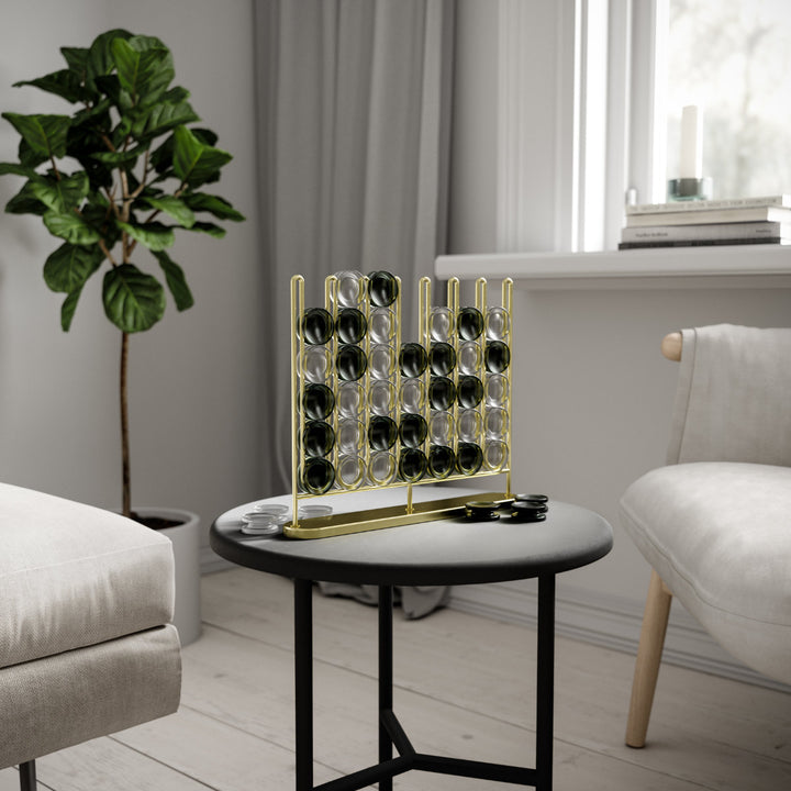 金属メッキでマットな仕上げを施した4目並べのゲームのセットです。インテリアとしてリビングや部屋に置いておくと、オシャレなアクセントになります。