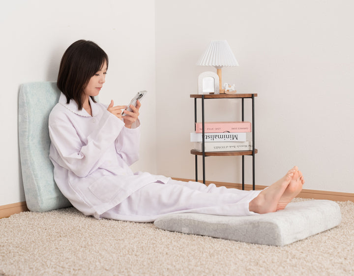 フットピローとしてだけでなく、背もたれにしてもちょうどよい心地良さです。
