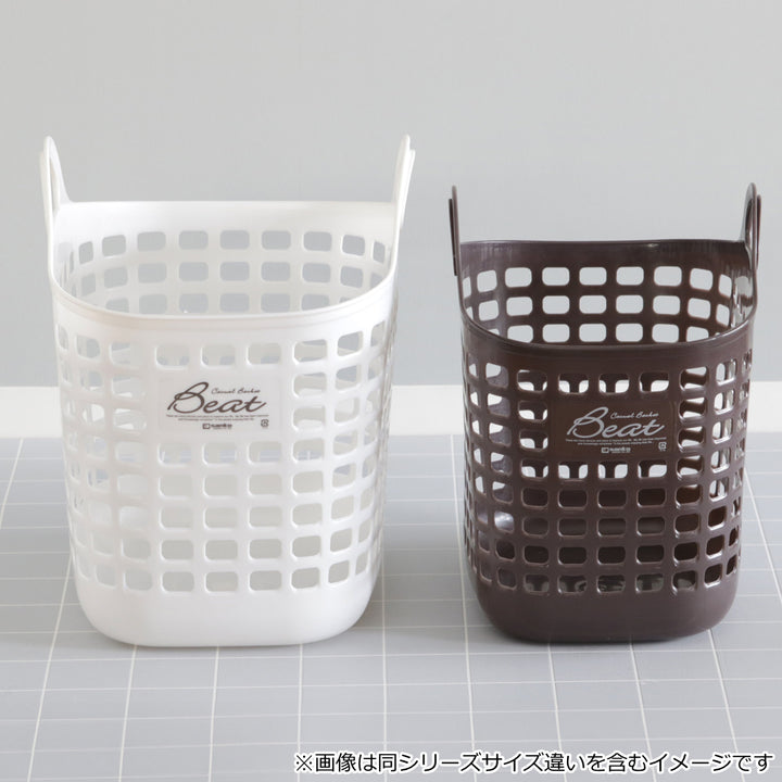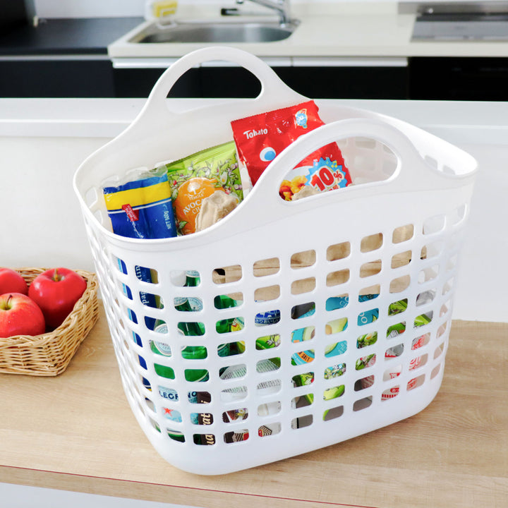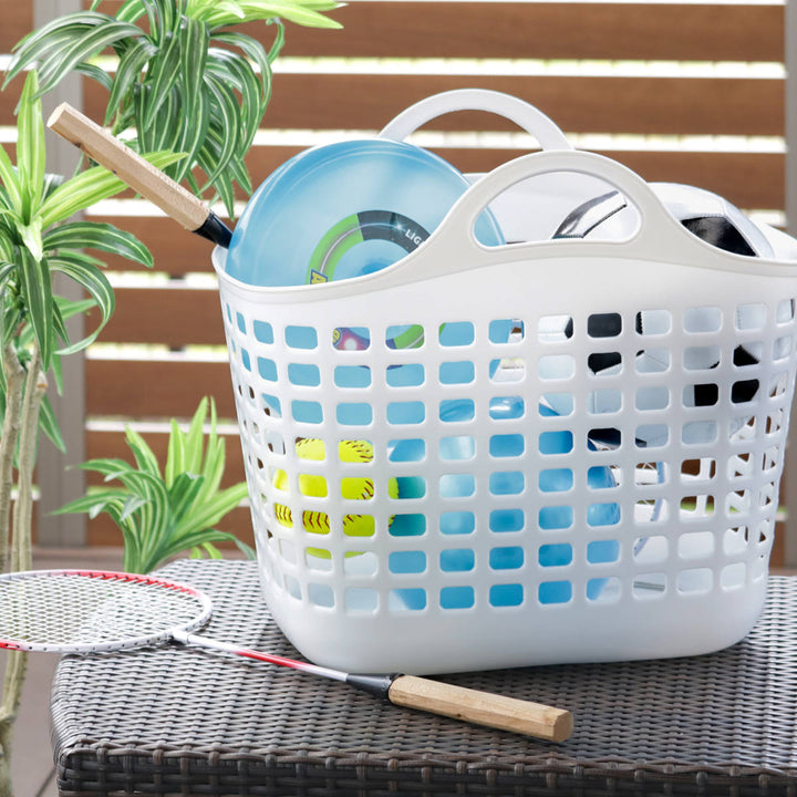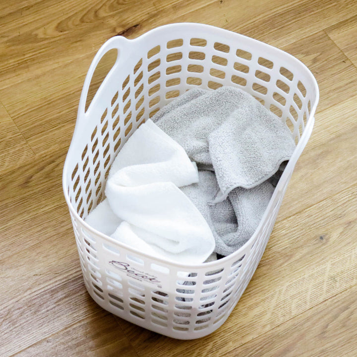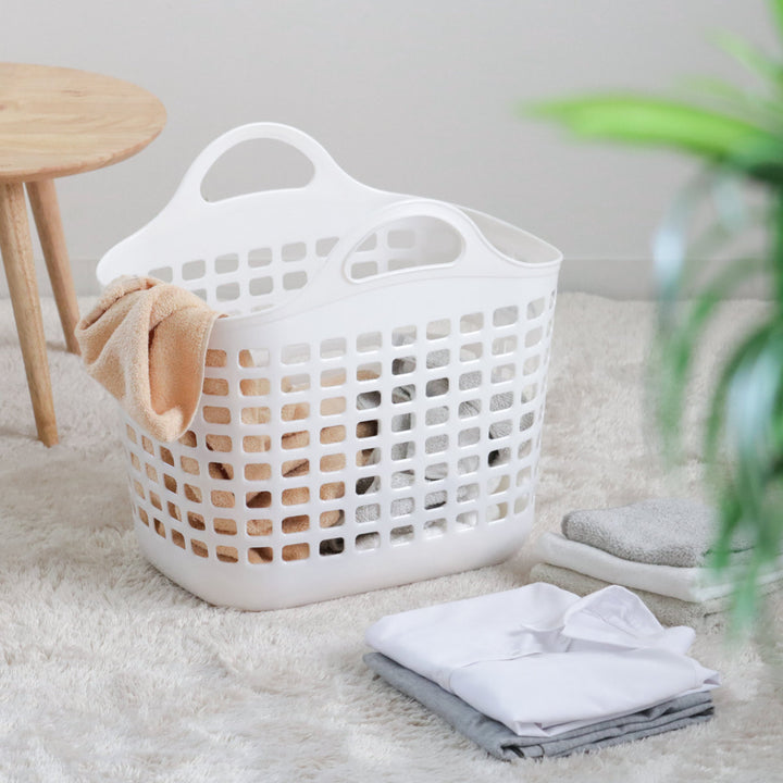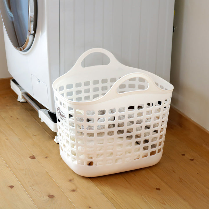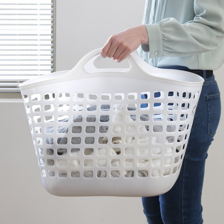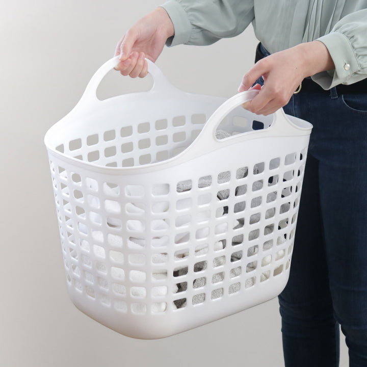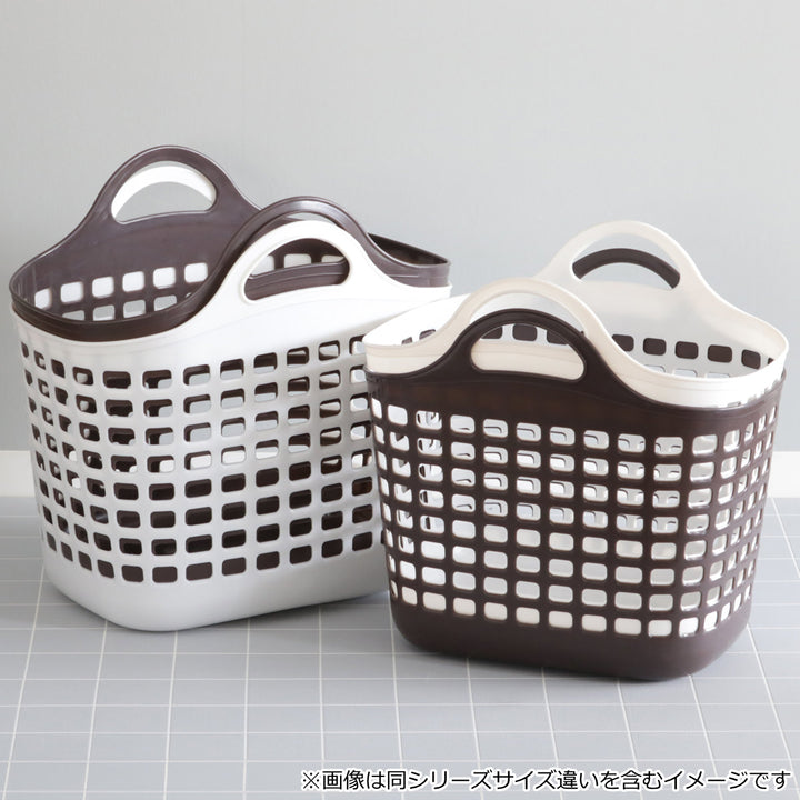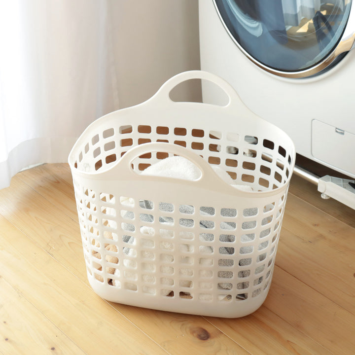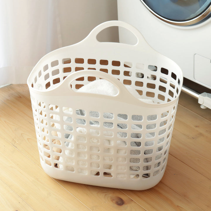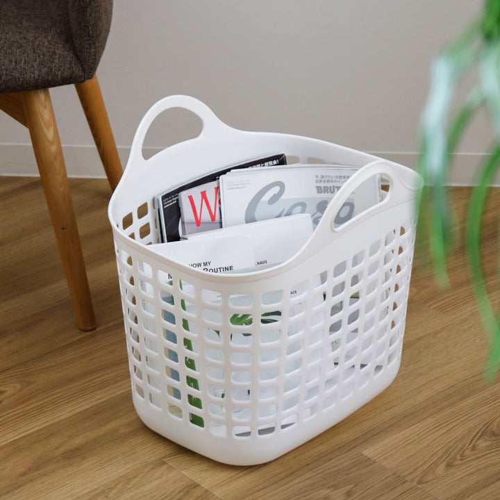 シンプルなデザインで生活に取り入れやすいランドリーバスケットです。プラスチック素材で扱いやすく、格子状に隙間があるので通気性も抜群です。
