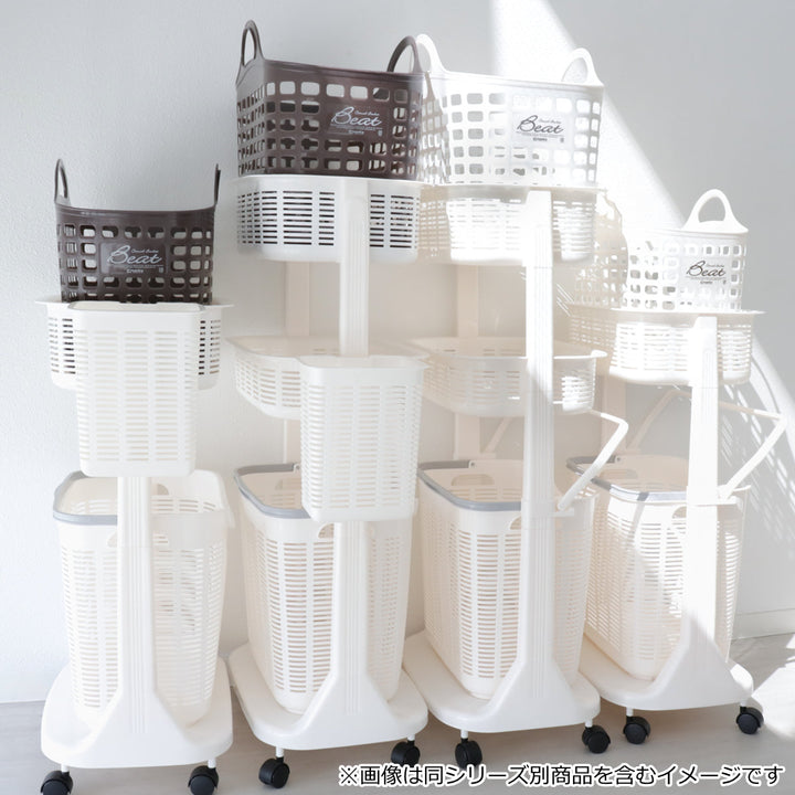 同シリーズのランドリーバスケットと一緒に使用することができます。上段にピッタリ収まるサイズになっており、バスケットを乗せて使うことで入れる物や使い方が広がります。