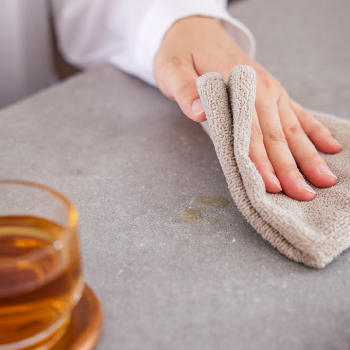 日常生活で付いてしまう小さな傷は目立ちにくく、衝撃と摩擦に強い素材です。また、水をはじきやすい素材の為、すぐに拭き取ることで、水跡が残りにくく衛生的に使用することができます。