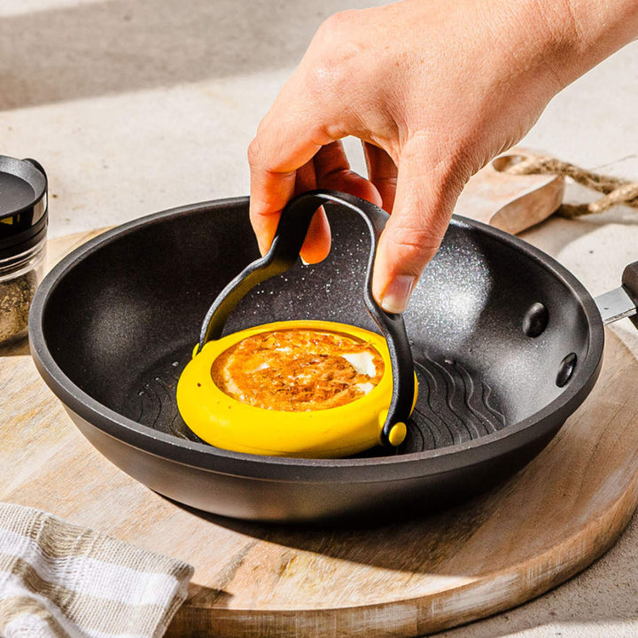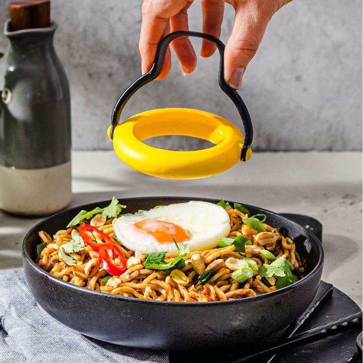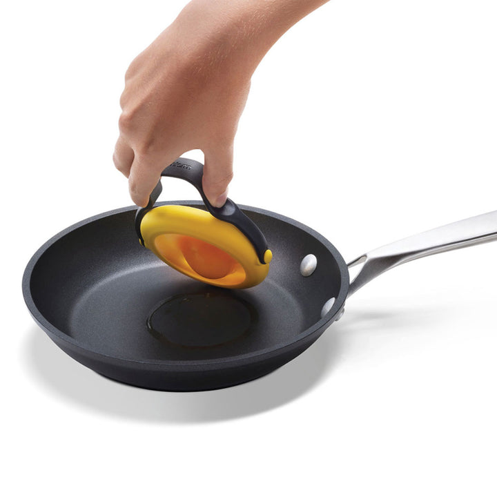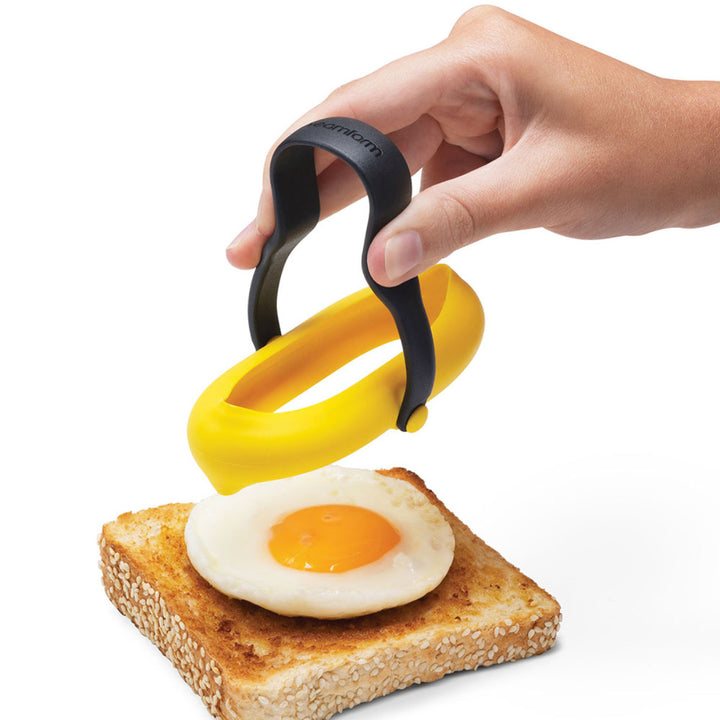 シリコンでできたやわらかいエッグモールドです。リング一つで卵をひっくり返したり持ち上げたりすることができます。柔軟性があるので、どんなフライパンでも密閉し生卵が漏れる心配がありません。しっかりキレイな形の目玉焼きを形成できます。