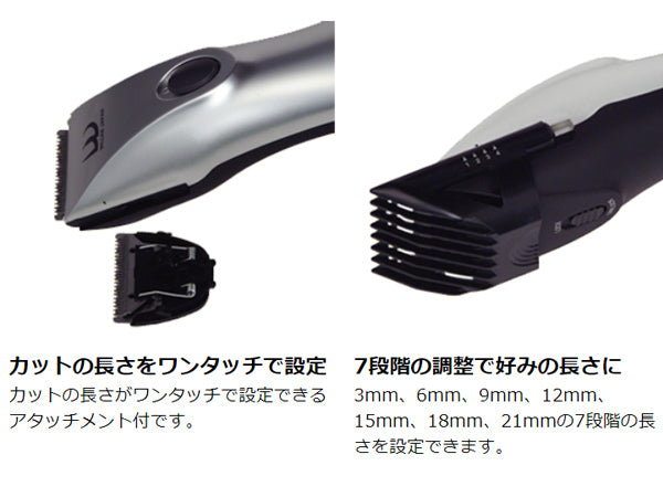 ●カットの長さがワンタッチで設定できるアタッチメント付きです。