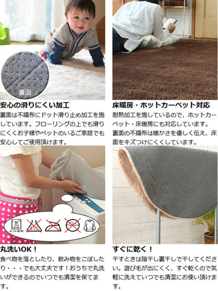 ![]() 安心の滑りにくい加工 裏面は不織布にドット滑り止め加工を施しています。フローリングの上でも滑りにくくお子様やペットのいるご家庭でも安心してご使用頂けます。 |