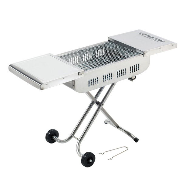 ![]() 大型ハンドルとホイール 持ち運びに便利な大型ハンドルとホイールがついた、丈夫で錆びにくいステンレス製のバーベキューコンロです。収納時には脚をたためるのでコンパクトに収納が可能です。 |