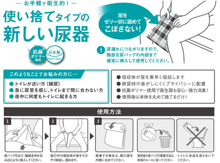 ●初めての方でも簡単に使える、使い捨てタイプの排尿バッグです。