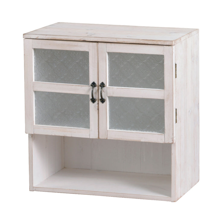 扉には中身を見せすぎないレトロ感のある花柄ガラスを使用しています。