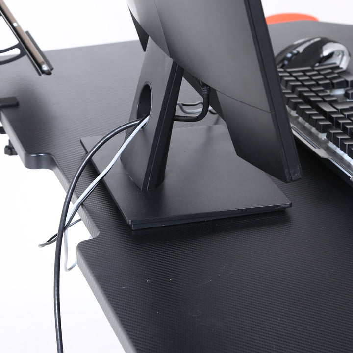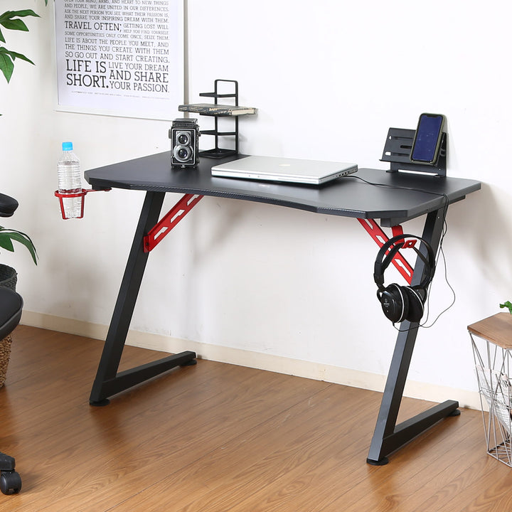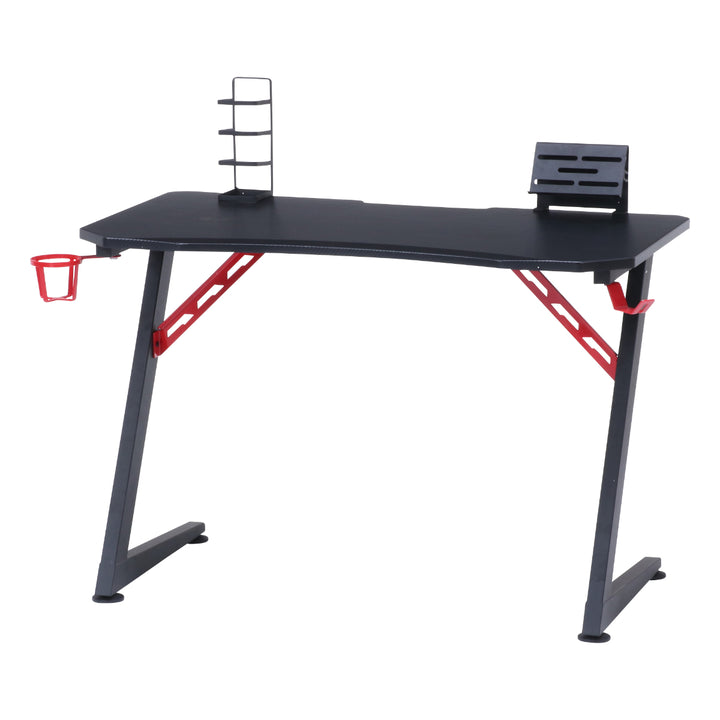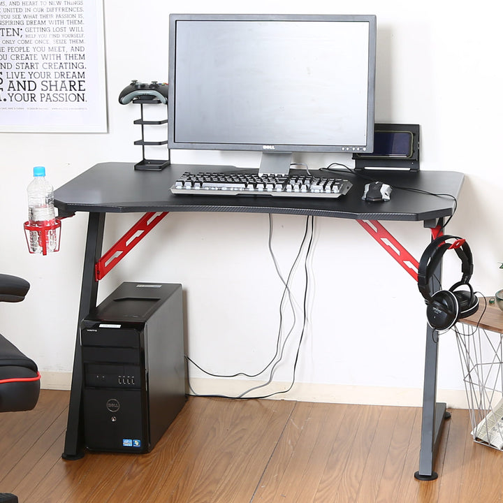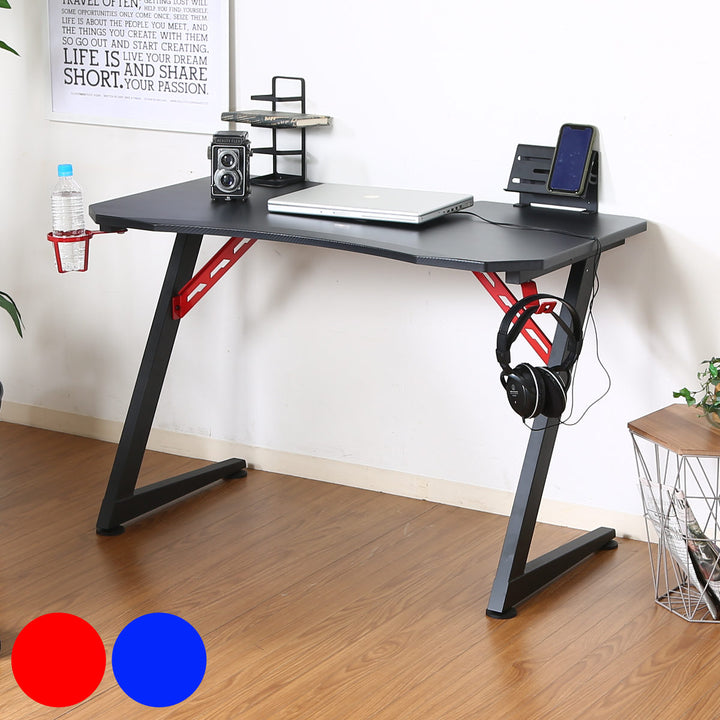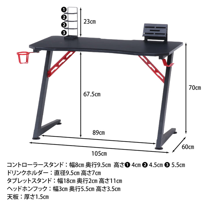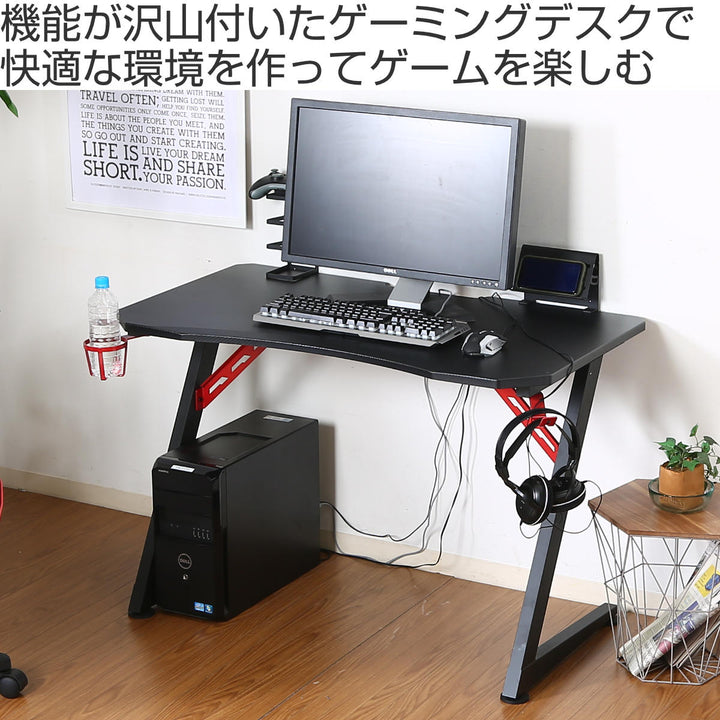 ゲームをプレイする時に使うコントローラーやヘッドホンなどを収納するスペースや、ドリンクホルダーなど便利な機能が沢山付いたゲーミングデスクです。快適な環境で楽しい時間を有意義に過ごすことができます。