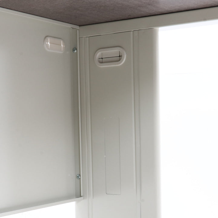 天板にはコードが通せる配線穴があります。開閉式のため使用しないときは閉じることができ、作業スペースをスッキリと保ちます。