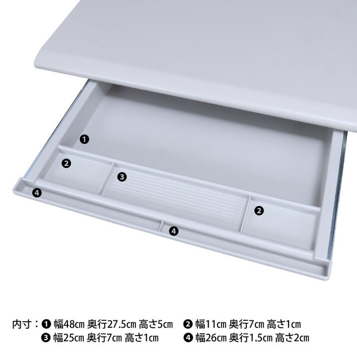 ●天板下に付いているトレイは筆記用具や小物などの整理整頓に役立ちます。