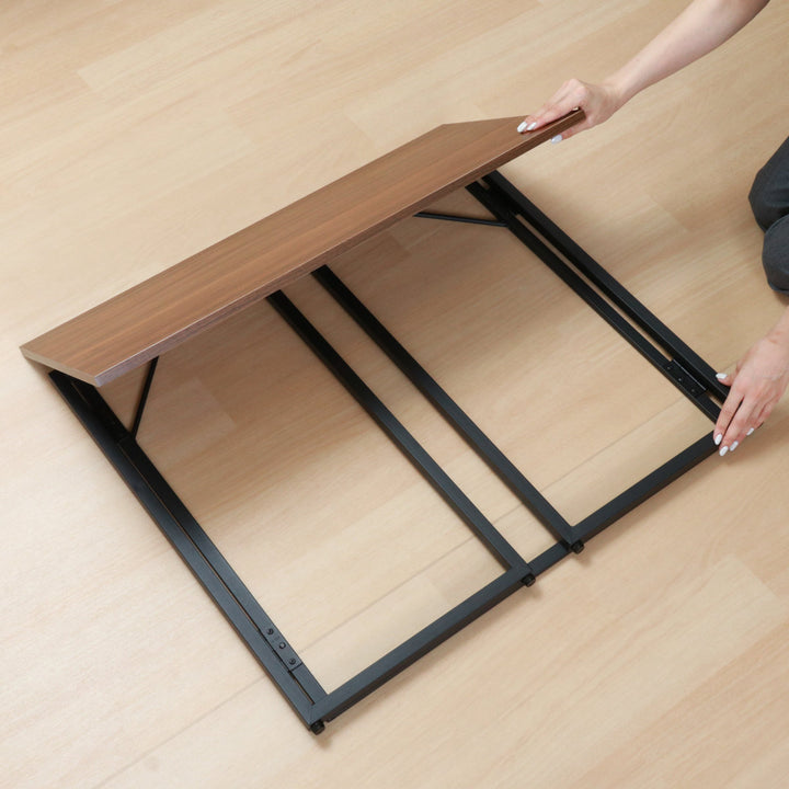 天板をあげてサイドフレームを左右に閉じることで簡単に折りたためます。