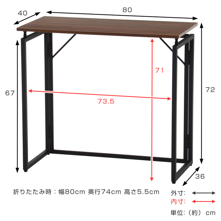 コンパクトサイズの折りたたみワークデスク 幅80cm