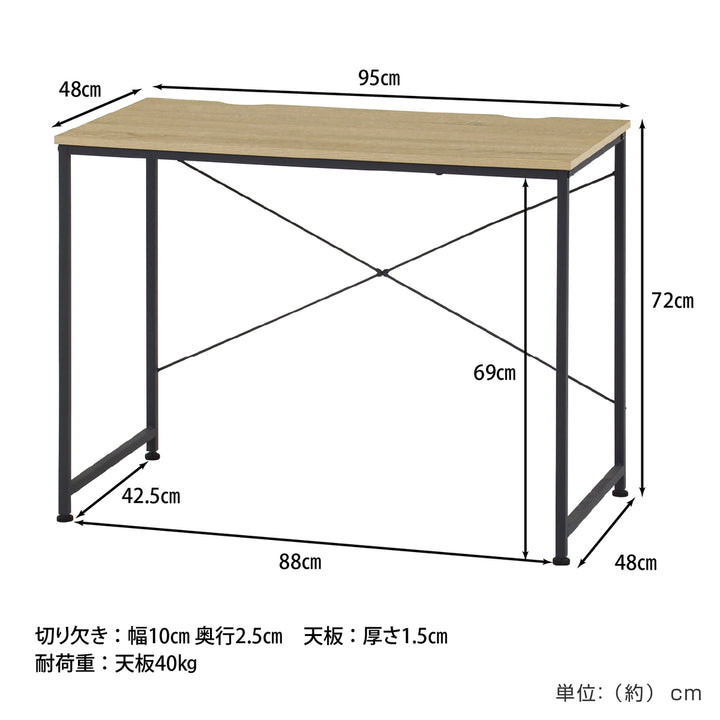 幅95×奥行48cmのコンパクトで圧迫感のない、ちょうどいいサイズ感です。書斎はもちろんリビング学習用のデスクとしてもご使用いただけます。