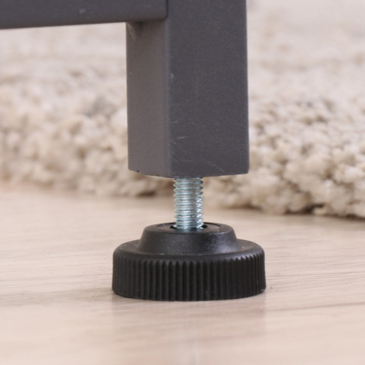 脚裏にはガタつきを抑えるアジャスター付きです。高さを微調節し、デスクを水平に保つことができます。