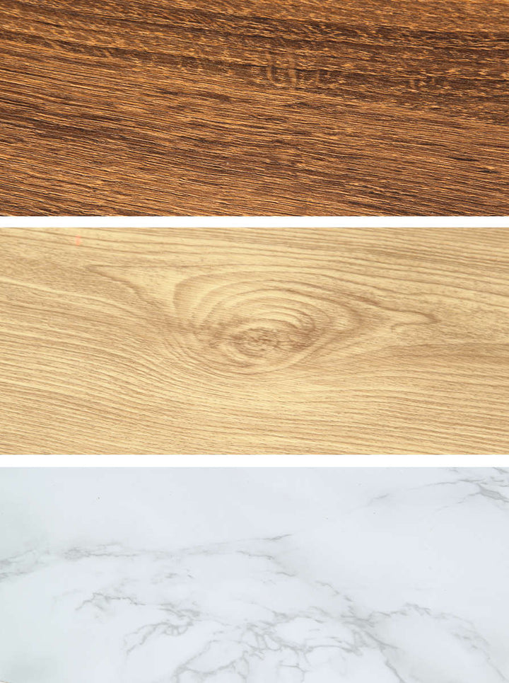 天板には合成樹脂化粧MDFを使用しており、木の木目を表現したぬくもりを感じる木目調と、シックで落ち着いた印象の石目調の3種類があります。