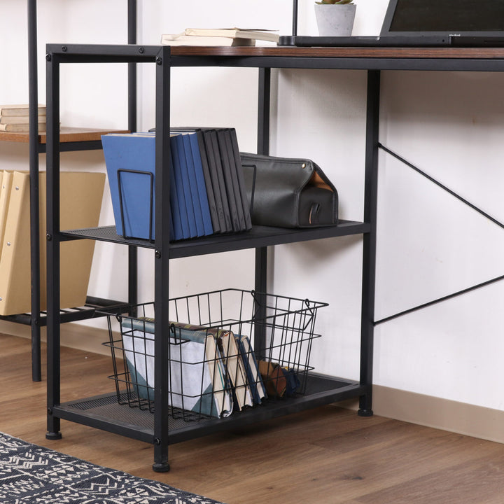 2段の収納ラックが一体になったデザインで、いつも使うものを手の届く範囲にまとめておくことができます。