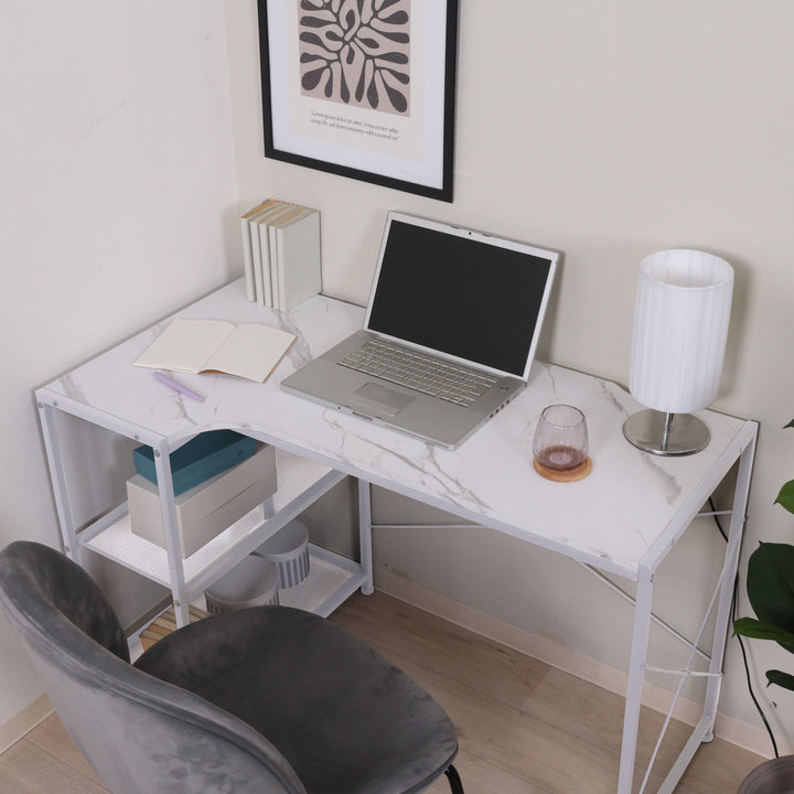 作業が捗るL字型天板はPCデスクとしても、勉強や作業をするのにも快適です。