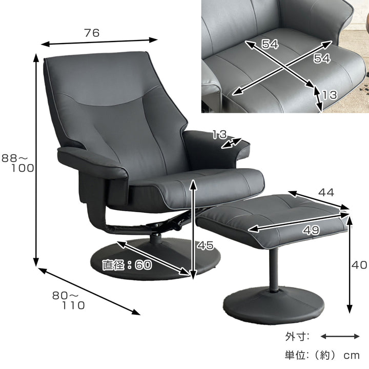 | サイズ | チェア:約 幅76×奥行80~110×高さ88~100(cm) オットマン:約 幅49×奥行44×高さ40(cm) |