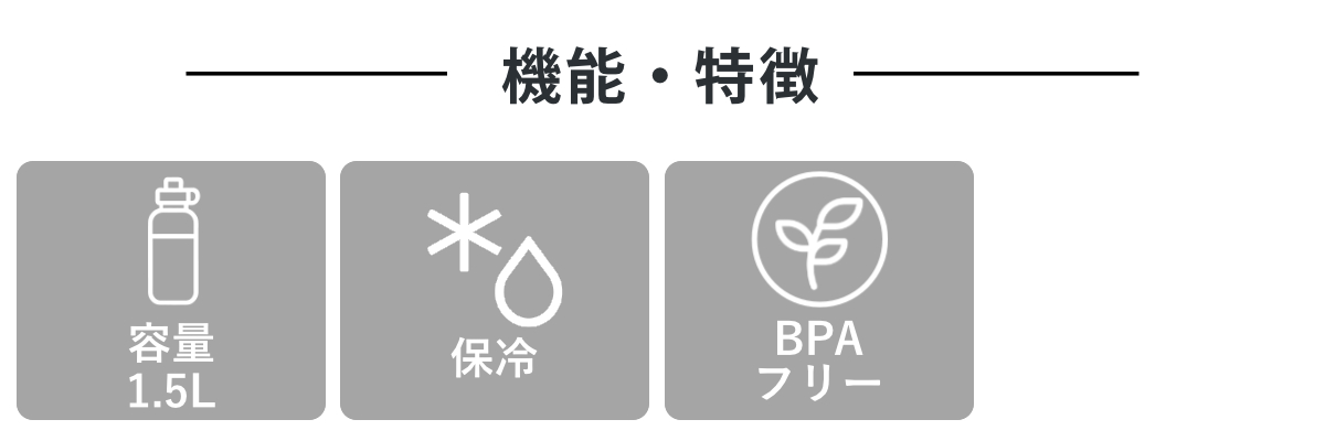 1L、1.5Lの2つのサイズ展開です。1Lは「ライムブルー、スカイブルー、ブラック」の3色、1.5Lは「ライムブルー、ブラック」の2色になります。季節やシーンに合わせた容量をお選びいただけます。
