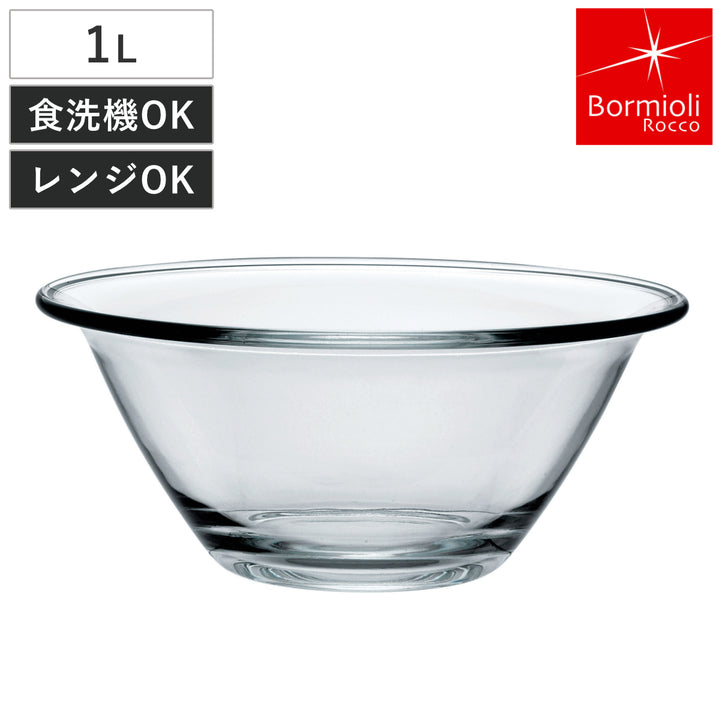 ボルミオリ・ロッコ ミキシングボウル 1L ミスターシェフ 強化ガラス 電子レンジ対応 食洗機対応