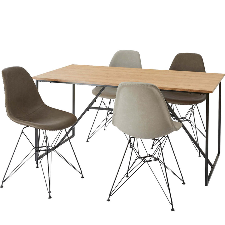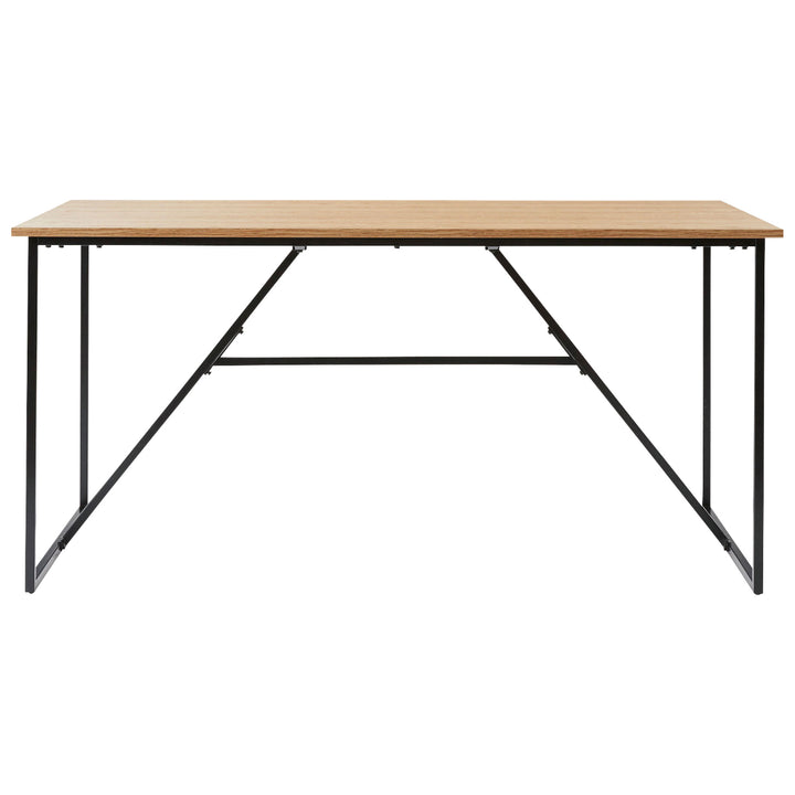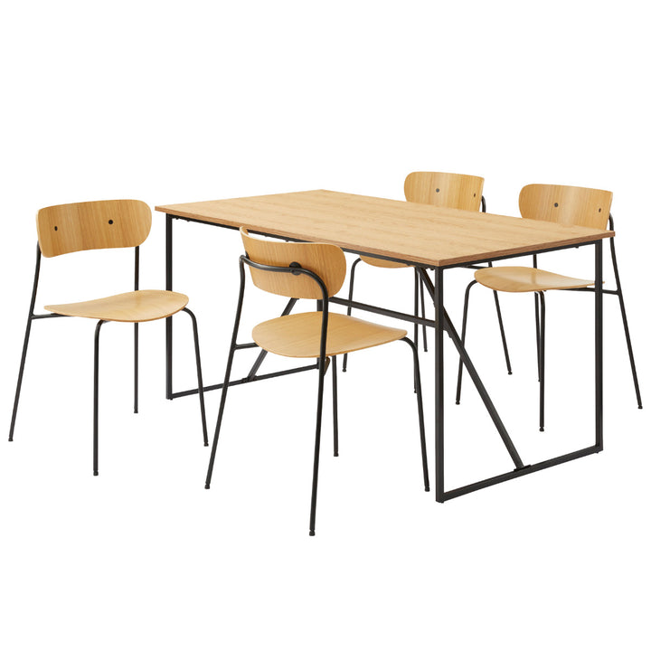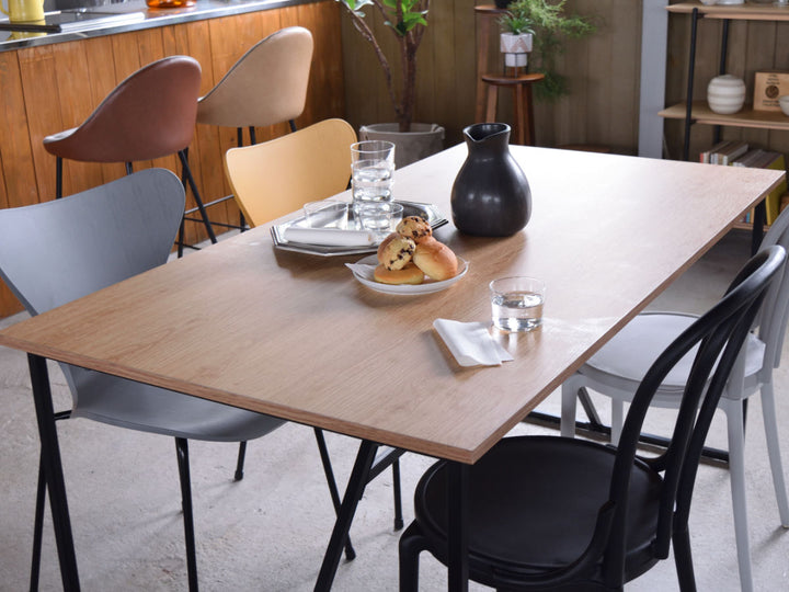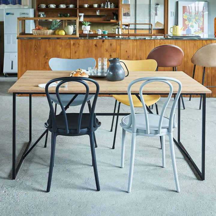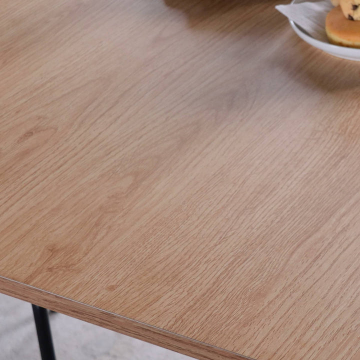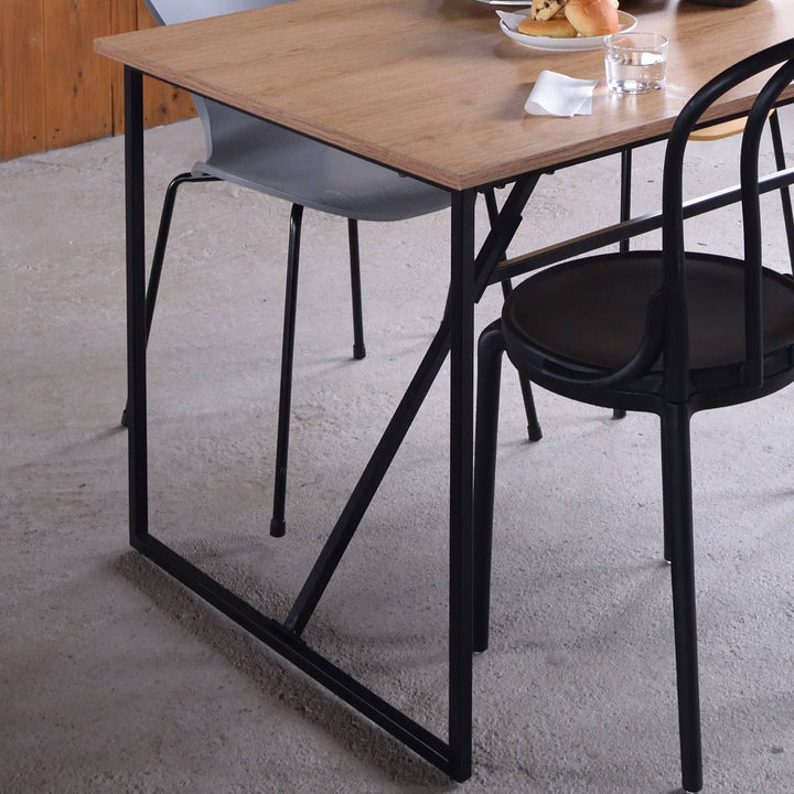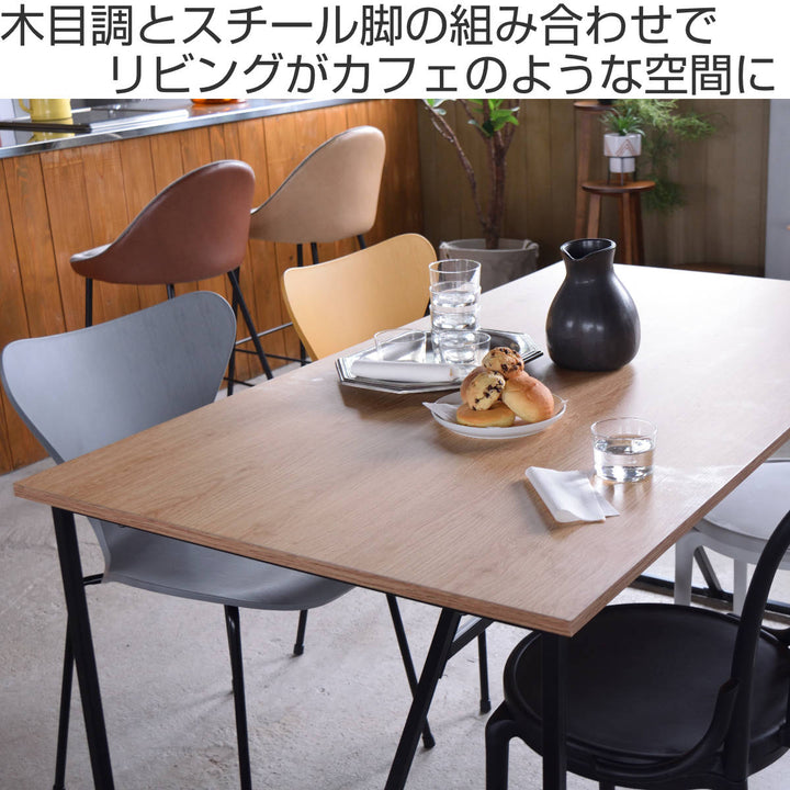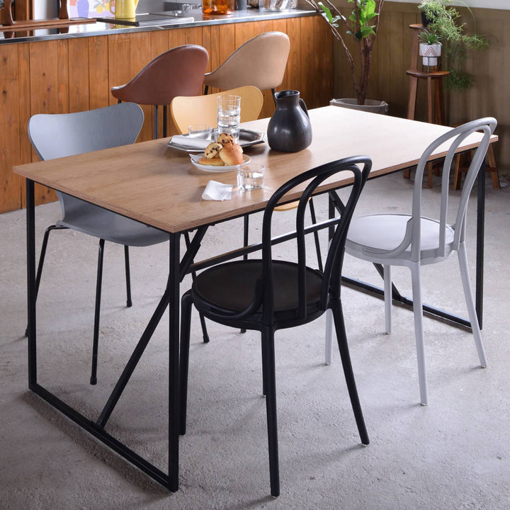 温もりのあるウッド調の天板とシンプルなブラックの脚の組み合わせがお洒落なダイニングテーブルです。細く抜け感のある脚は空間を広くみせ、スタイリッシュさを演出します。
