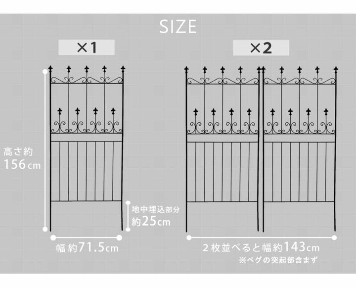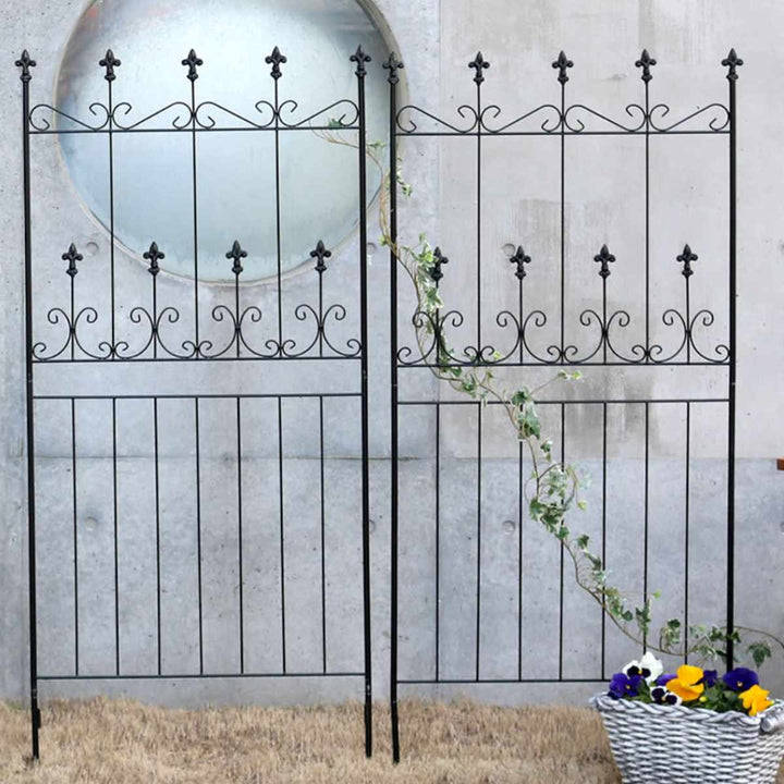 深い森の中に建つ石造りの古城…そんな雰囲気を漂わせる、繊細で風雅なデザインのアイアンフェンスです。これ一つで本格的なクラシック・スタイルのお庭になります。しっかり差し込むと頑丈なので、隣家との間仕切りとしてもお使いいただけます。