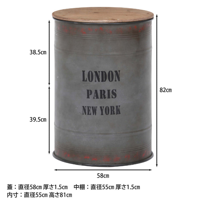 直径約58×高さ約82cmと大きなドラム缶です。ビンテージ調のデザインで、西海岸やブルックリンスタイルにピッタリなアイテムです。