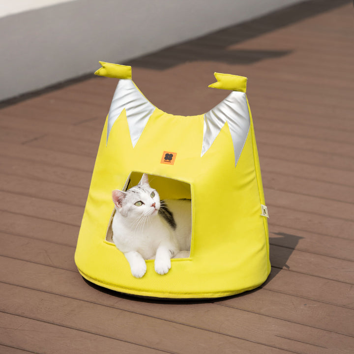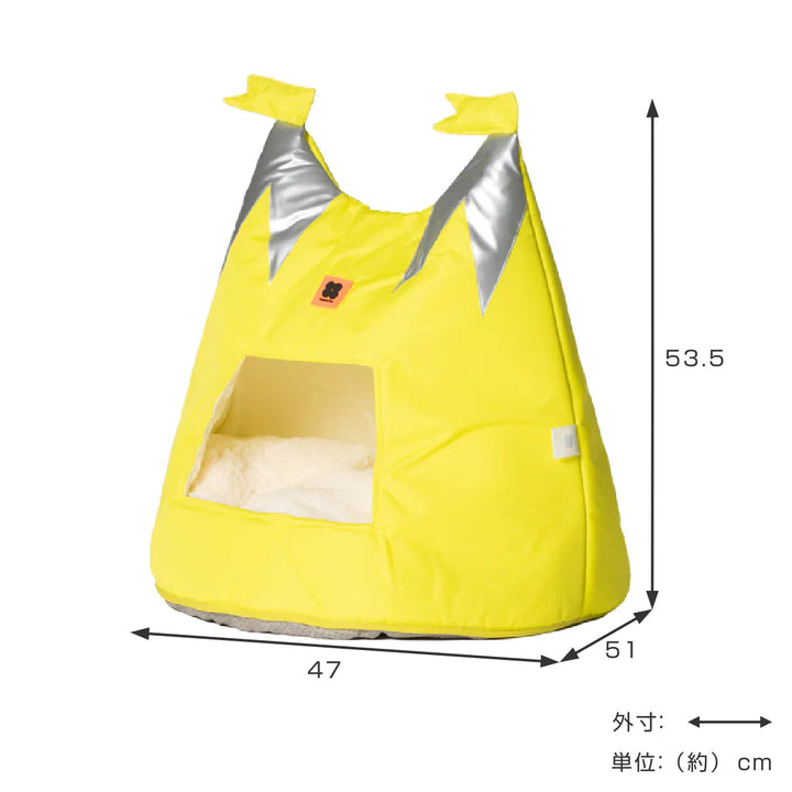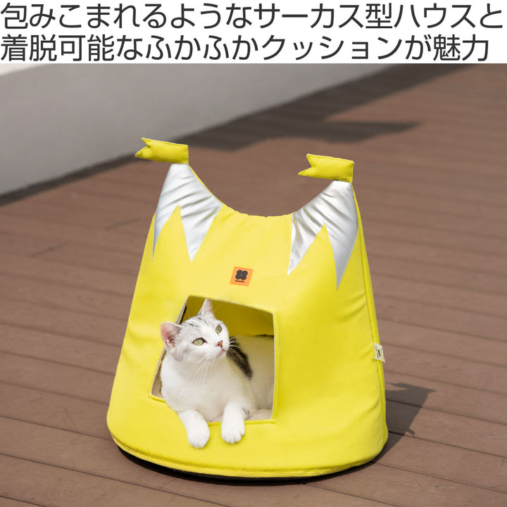 サーカスのテントをイメージした斬新なデザインの猫用ハウスです。包みこまれるような構造と着脱可能なふかふかクッションでゆったりおやすみできます。