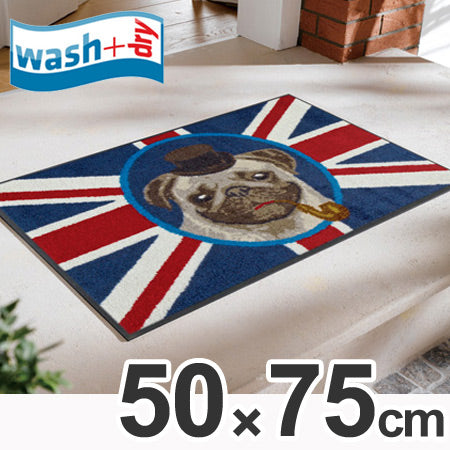 玄関マット wash+dry ウォッシュアンドドライ British Pug 屋内屋外兼用 50×75cm