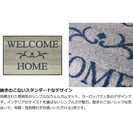 飽きのこないスタンダードなデザイン 洗練された雰囲気のシンプルなウェルカムマット。ヨーロッパで人気のデザインです。インテリアのテイストを選ばないシンプルさが魅力。飽きのこないシックな色合いで、年齢・性別問わずお使いいただける1枚です。 | ||