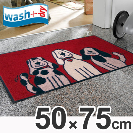 玄関マット wash+dry ウォッシュアンドドライ Three Dogs 屋内屋外兼用 50×75cm