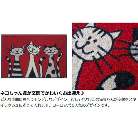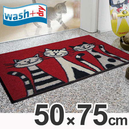 玄関マット wash+dry ウォッシュアンドドライ Three Cats 屋内屋外兼用 50×75cm