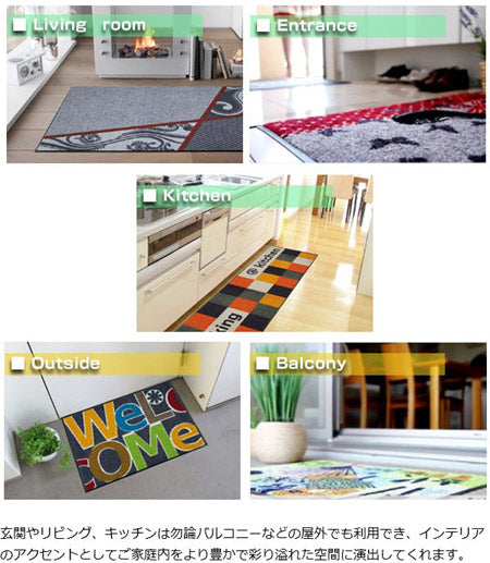 裏面ラバー仕様のインテリアマットで強力な滑り止め効果 日本では裏面ラバー仕様のインテリアマットは非常に珍しいですが、 土足の文化である欧米では非常に一般的。どんな床にも強力にフィットするので、マットがめくれたり、ずれたりすることがなく、小さなお子様やご高齢の方がいるご家庭でも安心です。屋外、玄関先、ベランダ出入り口等でも使用いただけます。 | ||