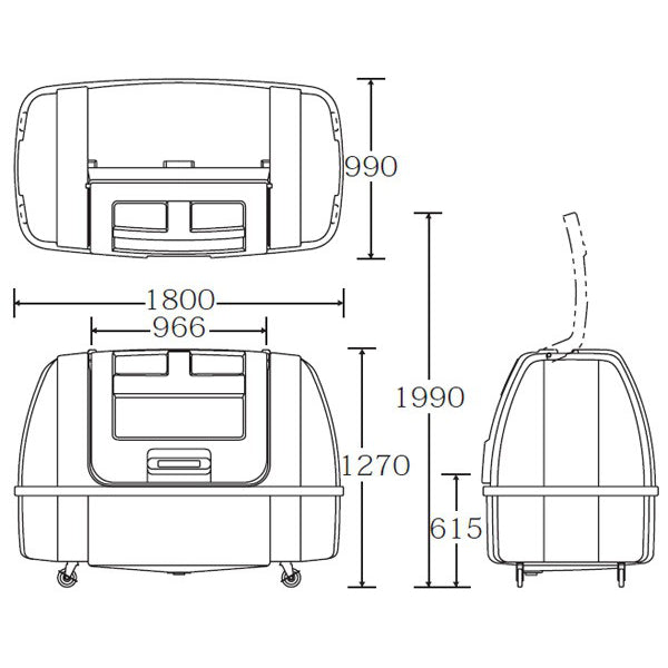 | サイズ | 約 幅180×奥行99×高さ127(cm) フタ最開口時の高さ:約 202(cm) キャスター:約 直径10(cm) |