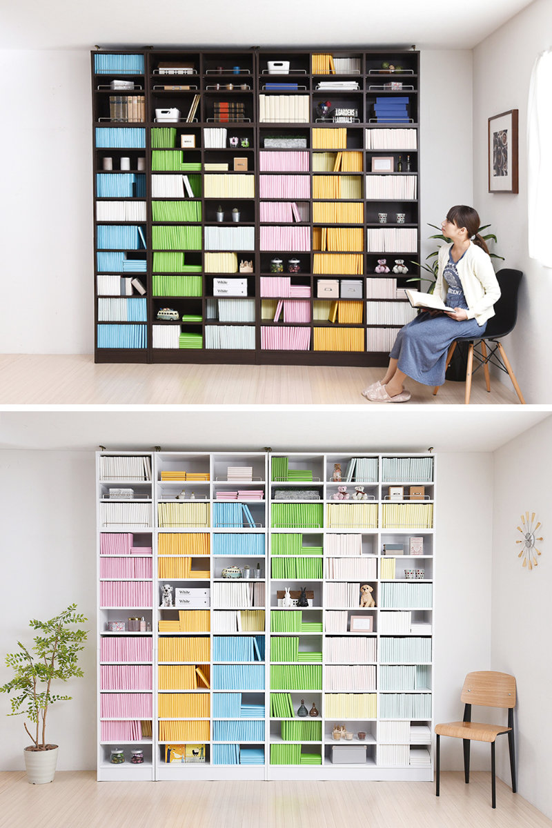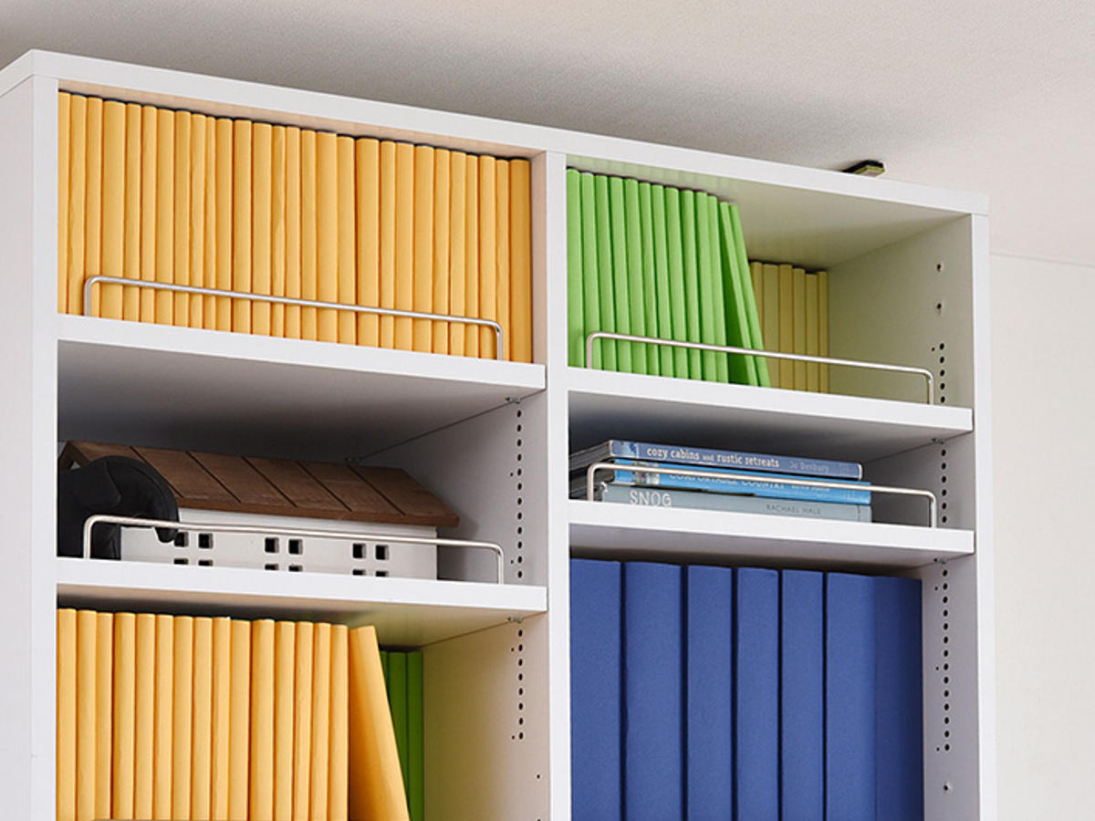 本棚には必要不可欠だった中間固定棚を無くすことで自由度が上がり、中央部分にも書籍等が収納可能になりました。