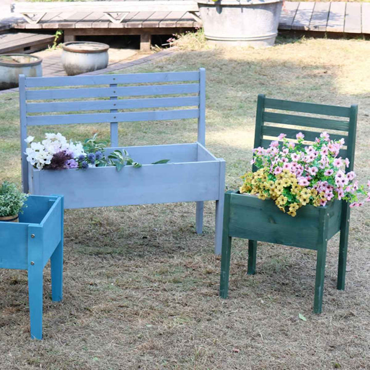 優しい雰囲気の天然木素材と、フランスの田舎町にありそうなアースカラーを組み合わせたチェア型プランタースタンドは、どの色も植物との相性が良くしっかりグリーンを引き立てます。