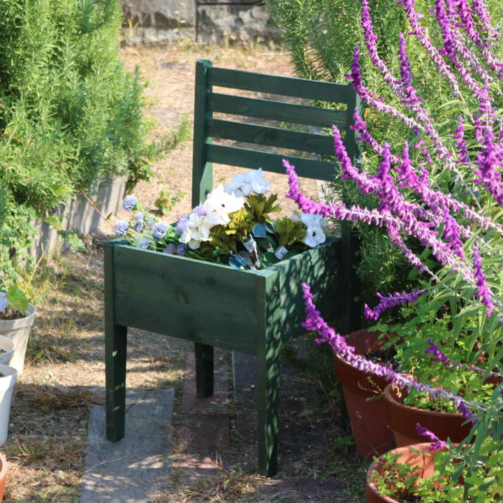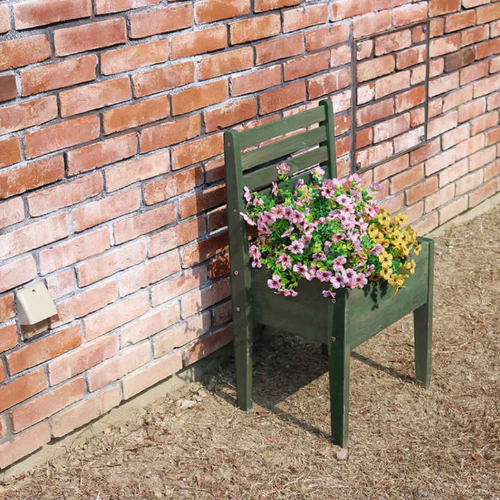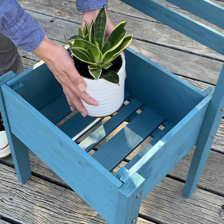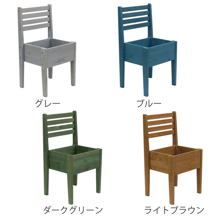 優しい雰囲気の天然木素材と、フランスの田舎町にありそうなアースカラーを組み合わせたチェア型プランタースタンドは、どの色も植物との相性が良くしっかりグリーンを引き立てます。
