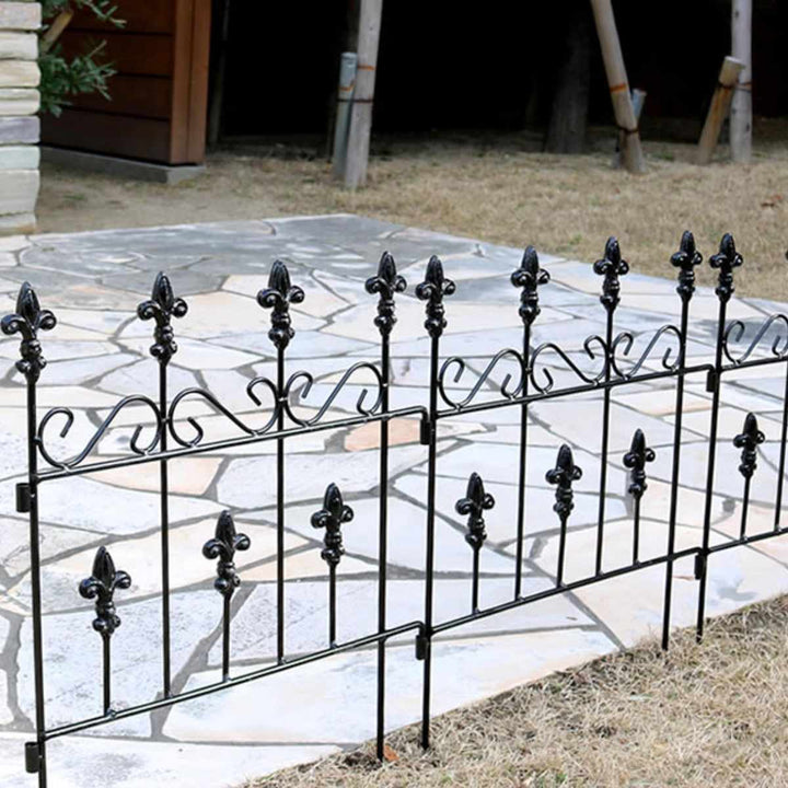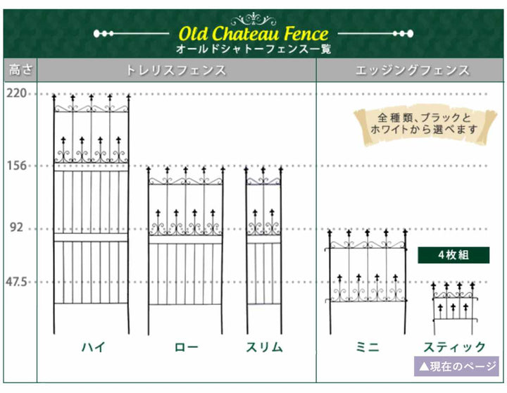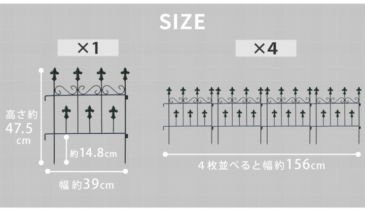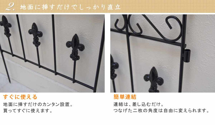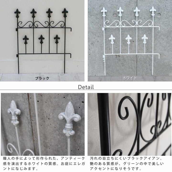 深い森の中に建つ石造りの古城…そんな雰囲気を漂わせる、繊細で風雅なデザインのアイアンフェンスです。これ一つで本格的なクラシック・スタイルのお庭になります。しっかり差し込むと頑丈なので、隣家との間仕切りとしてもお使いいただけます。