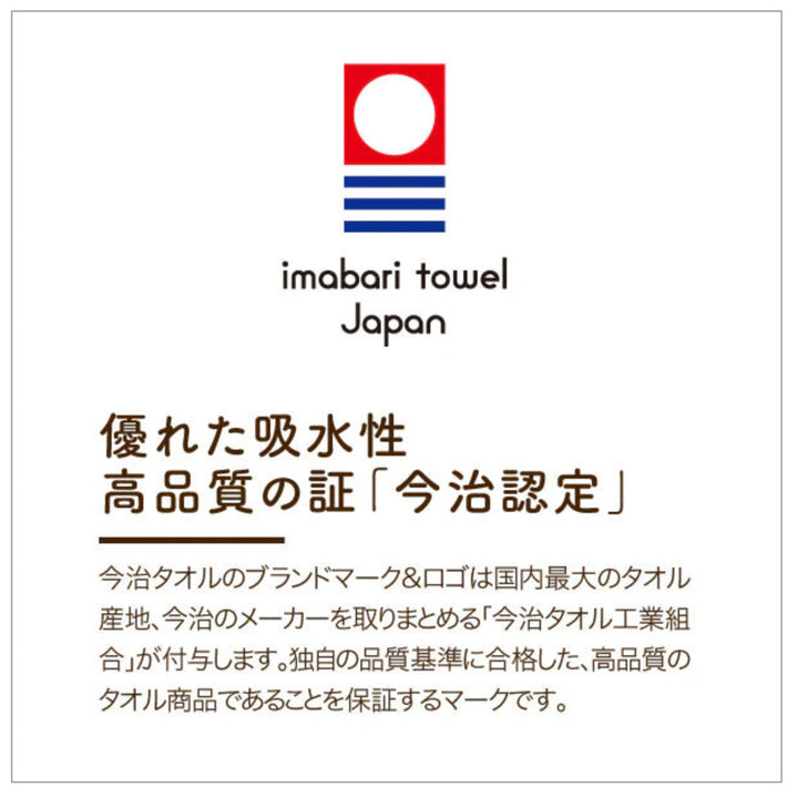 今治タオルのブランドマーク&ロゴは、「今治タオル工業組合」独自の品質基準に合格したタオル製品であることを示しています。認証された全ての商品に今治タオルブランドマークが付いています。