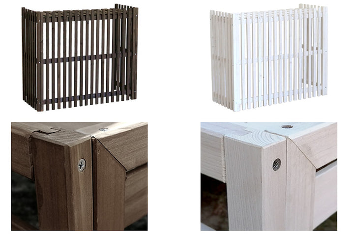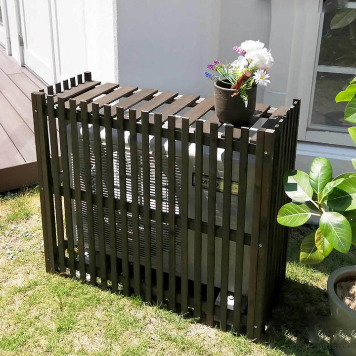 どうしても生活感が出てしまうエアコンの室外機を、天然木のおしゃれな室外機カバーで目隠しができます。標準サイズの室外機に利用できます。草花がきれいなお庭に置いても、センス良くイメージチェンジができます。