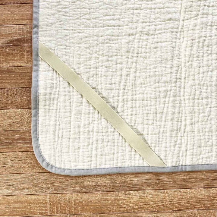 四隅にはゴム付きで、お布団やマットレスにしっかり固定できてずれにくいです。ベッドメイキングやお洗濯の際にも楽ちんです。
