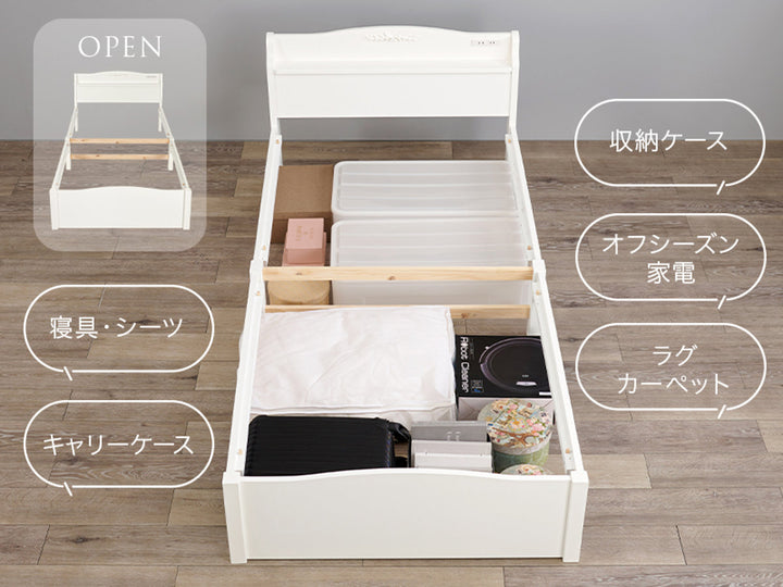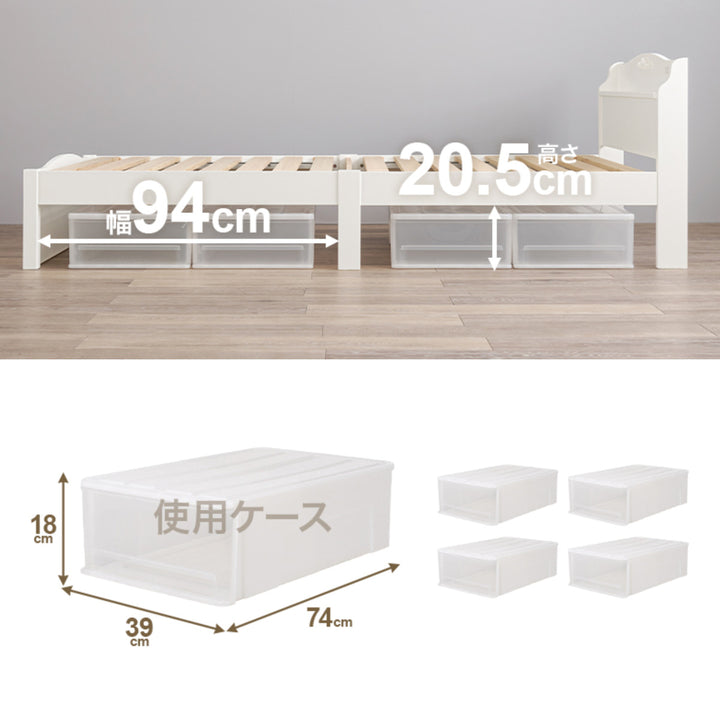 ベッドの下は収納スペースとお使いいただけます。収納ケースやキャリーケース、オフシーズンの家電など、まるごと収納できるのでお部屋もすっきりと片づきます。