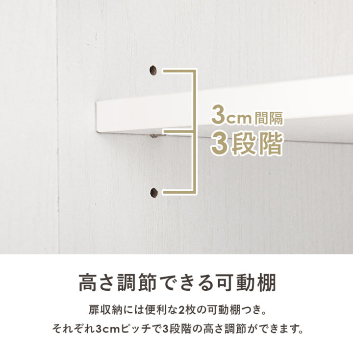扉収納は、棚板を取り外すと高さ55cmなので調味料などの背の高い物も収納できます。扉を閉めてしまえば生活感をすっきりと隠してくれます。