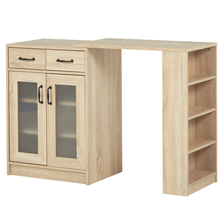 拡張テーブルのサイドは必要な物をサッと取り出せるオープン収納。上段と下段は可動棚なので、収納したい物に合わせて高さを調節できます。