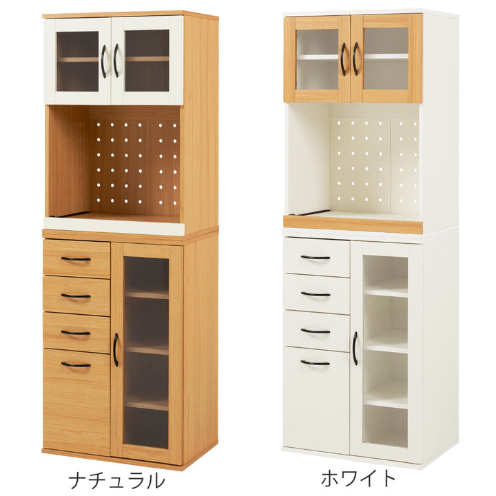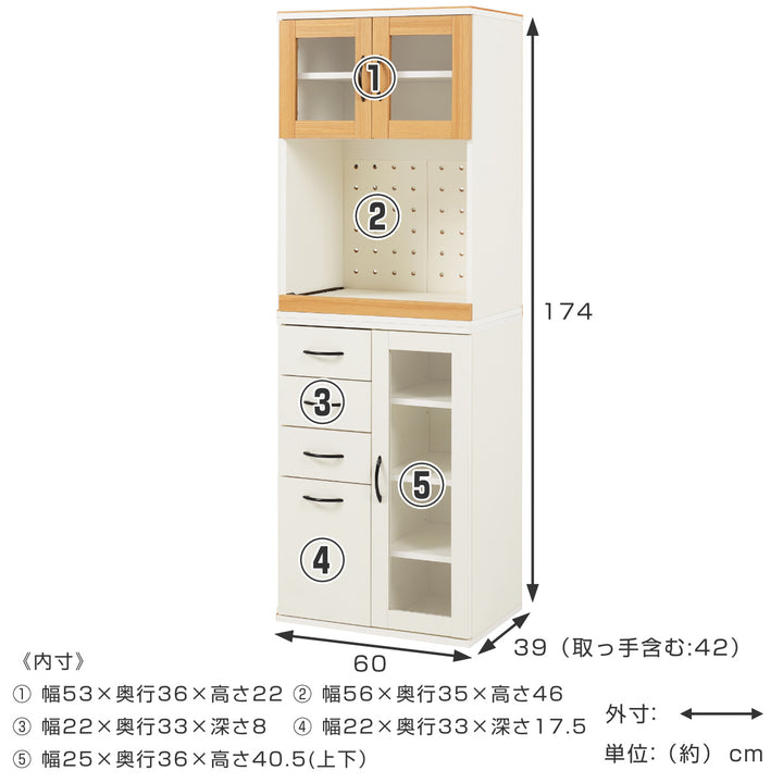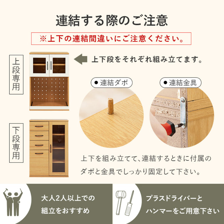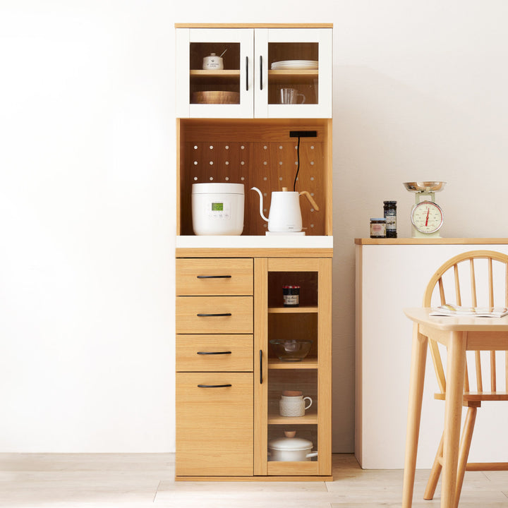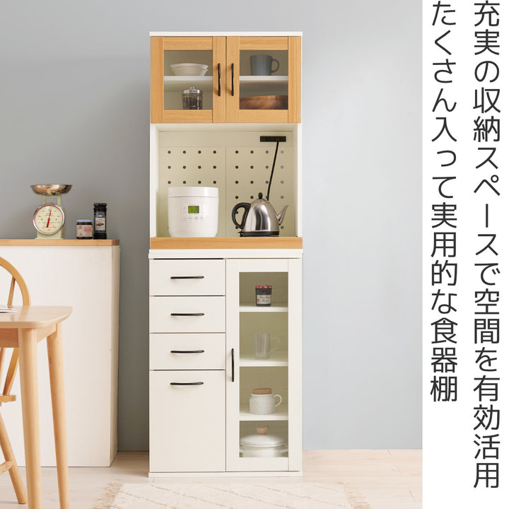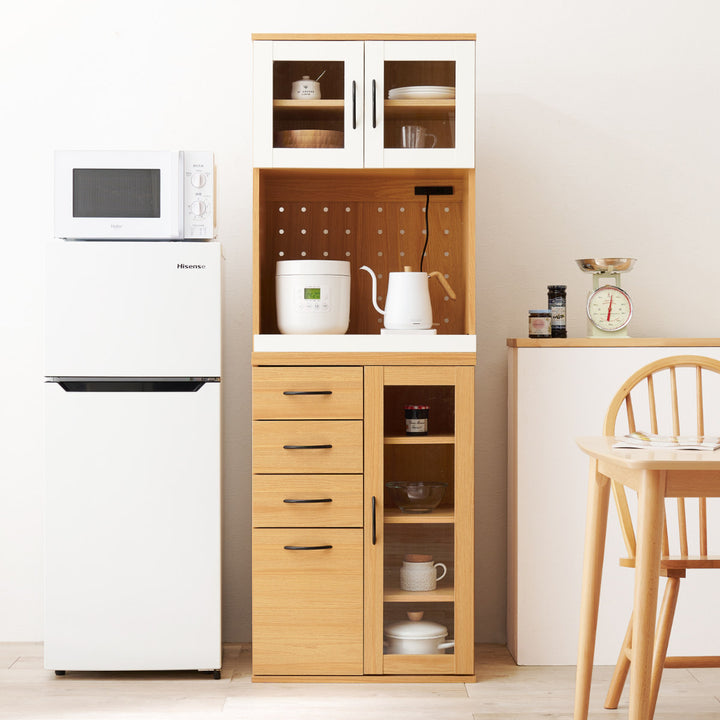 ベージュ×ホワイトの優しい印象の食器棚 幅60cm