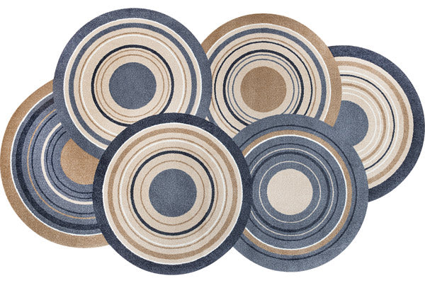 ![]() ぐるぐる丸が重なったかわいいデザイン 円が重なったデザインが個性的でかわいいマットです。お部屋に敷いても玄関マットとしてもご使用いただけます。色合いが落ち着いているので主張しすぎず優しい印象です。 |